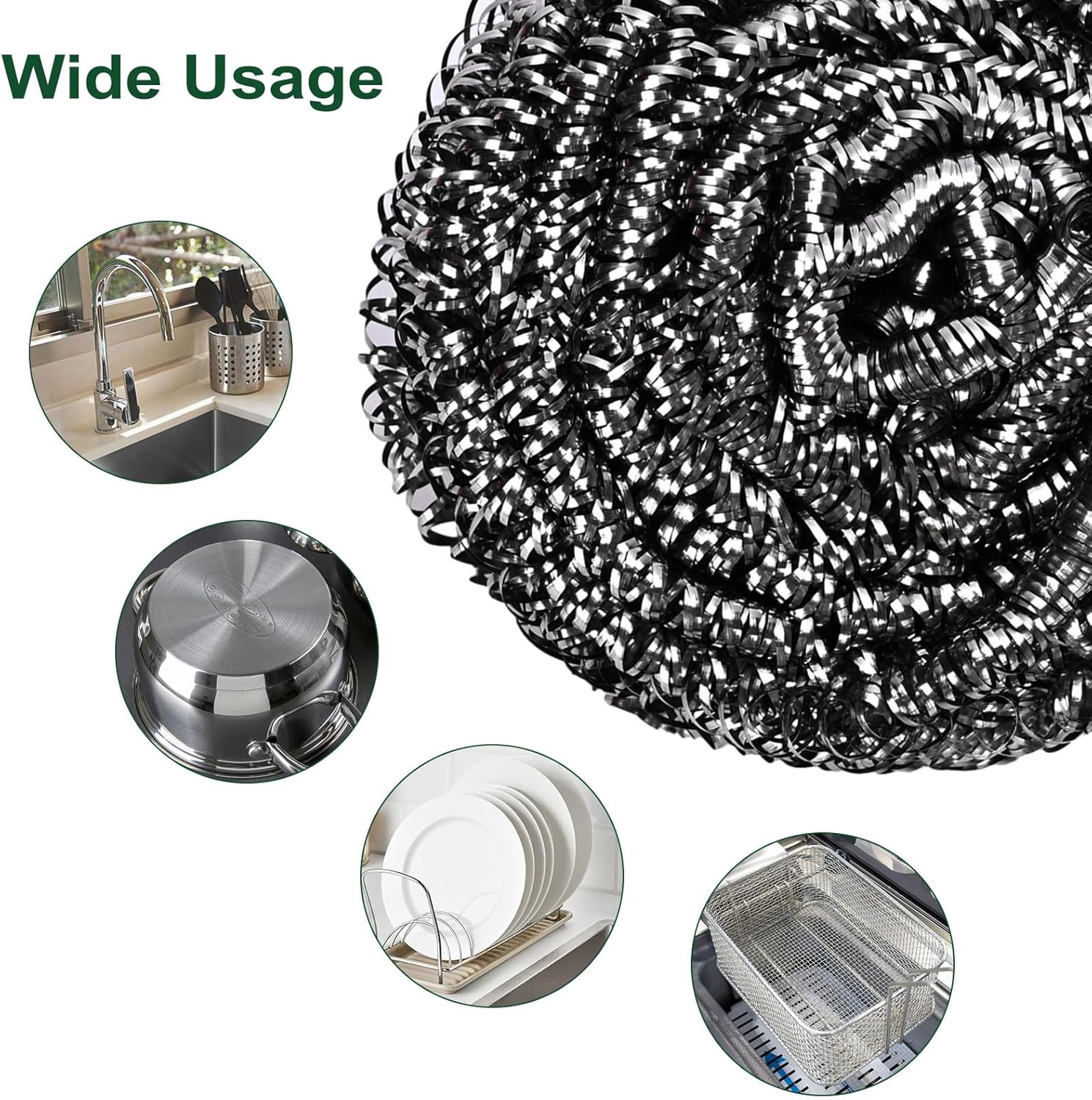 Powerful Scrubber:With these scrubbers,you can scrub and remove the stubborn messes or burnt-on leftover within second,pefect for the uncoated cookware.