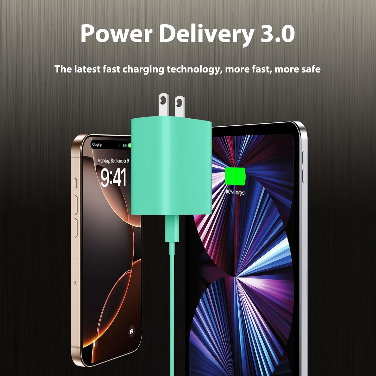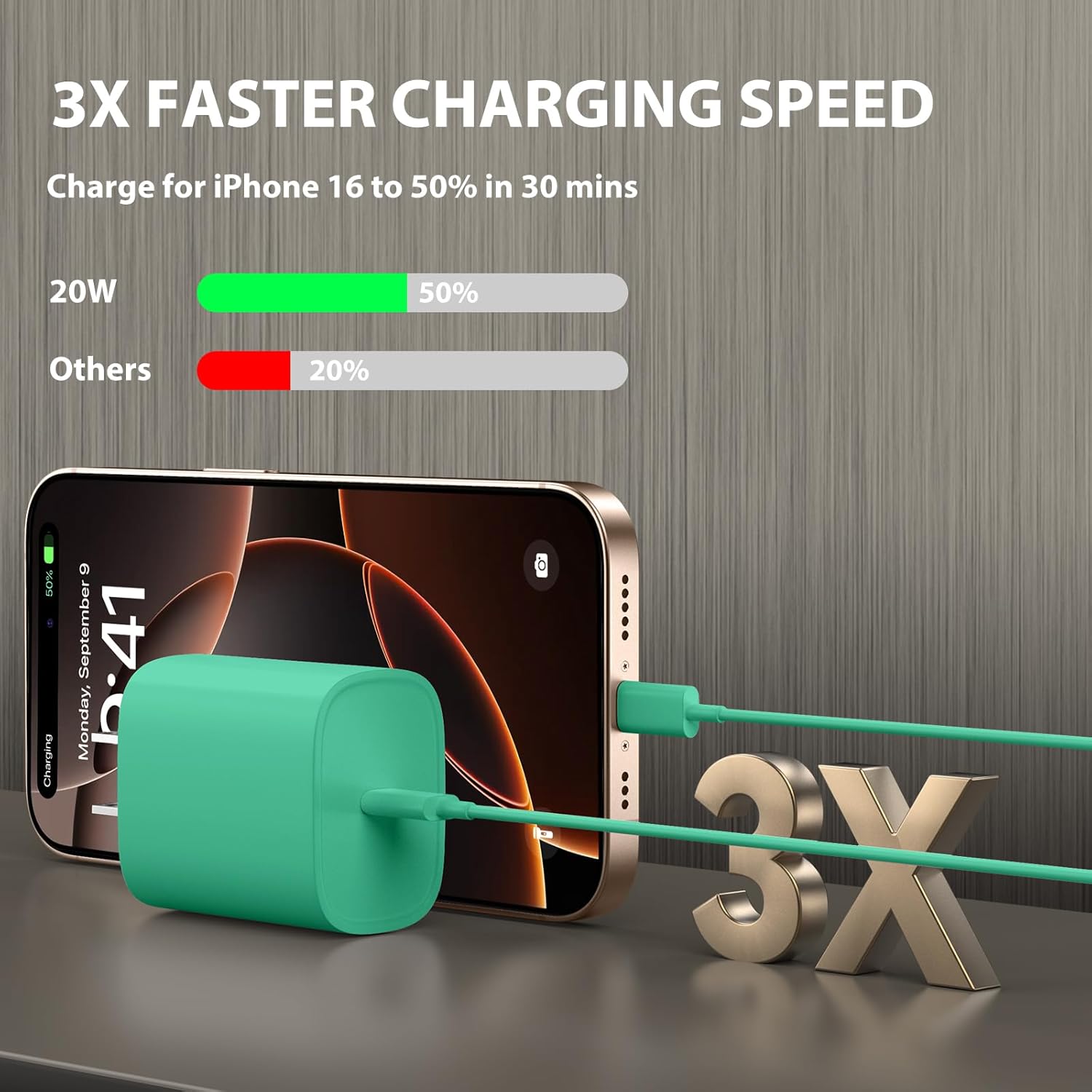 USB C i.Phone 15 Charger- The USB C power adapter use the PD 3.0 fast charging technology provides maximum 20W output power, fast charge i.Phone 15/15 Plus/15 Pro/15 Pro Max to 50~57% in just 30 minutes.